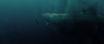 This CGI fest of a monster movie does its best in the beginning to do "the Spielberg" and refrain from showing the shark. We don't get our first glimpse until the very end of the first act. And I suppose this movie is evidence that even though Steven himself did "the Spielberg" accidentally due to his malfunctioning Bruce, that's not the only variable that makes for masterful suspense in a film.
